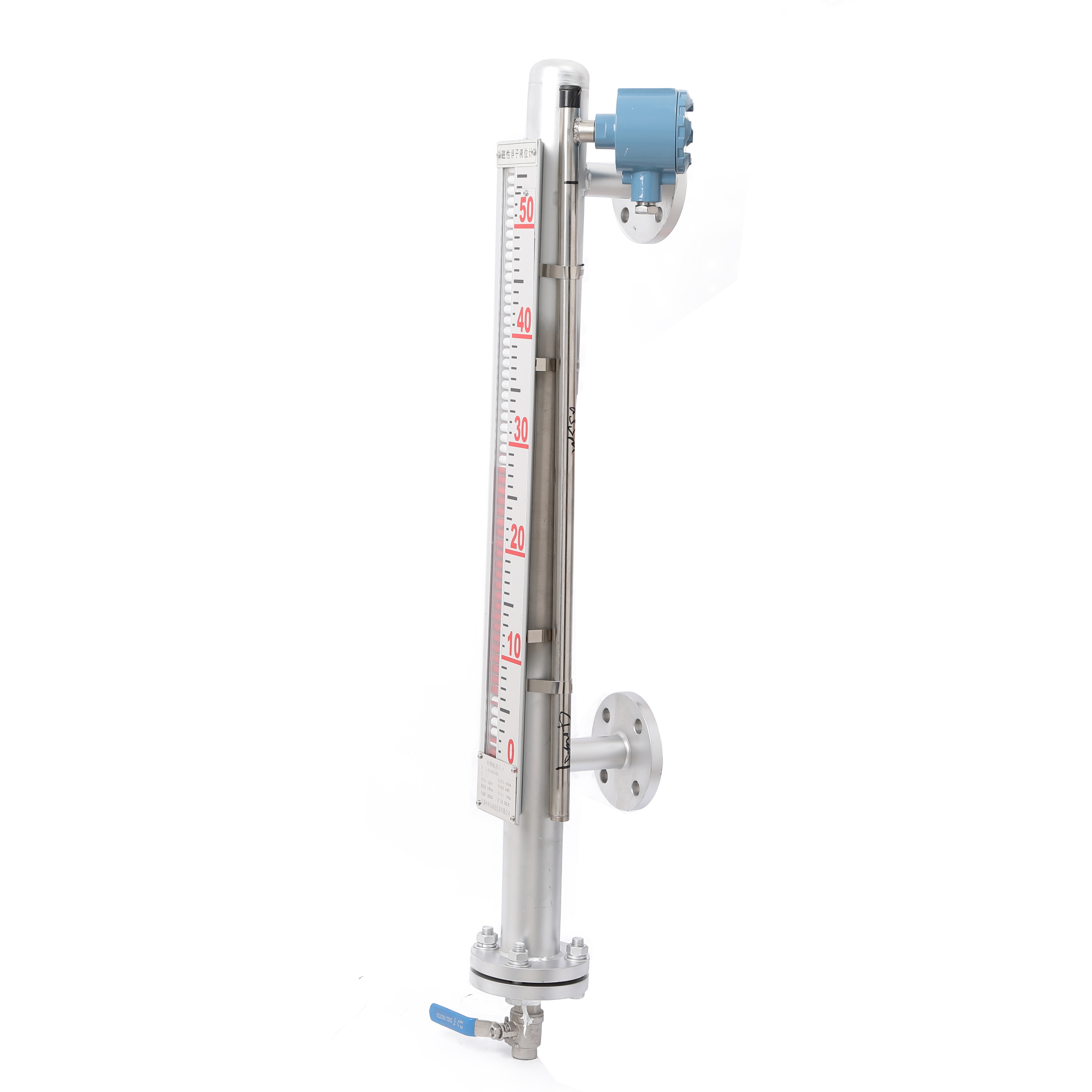 为了扩大它的使用范围,还可以根据相关标准及要求增加液位变送装置,以输出多种电信号。其中,4~20mA电流信号是比较常用的一种。比如:在监测液位的同时磁控开关信号可用于对液位进行控制或报警;在翻柱液位计的基础上增加了 4~20mA 变送传感器,在现场监测液位的同时,将液位的变化通过变送传感器、线缆及仪表传到控制室,实现远程监测和控制